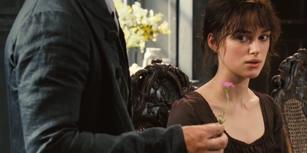 pride & prejudice dir. joe wright (2005) romantic fantasy about being chosen by the dourest, most disinterested boy whose parents also have the most money among the lineup of post-punk revival bands headlining bowery ballroom in 2005. never had much desire to learn more about jane austen’s canon of reversal-of-fortune romantic dramas, but honestly the overwhelming pleasantness of this one really hit when i saw it in theaters less than 24 hours after watching a procession of trailers for increasingly fucked-up and deeply stylized body horror movies i will almost certainly see immediately upon release ahead of sinners, not to mention the secondhand millennial nostalgia for media just beyond my scope of interest (easy to see how mr. darcy’s seemingly conscious hot-topic-codedness paved the way for ed cullen). also a really great cast here led, of course, by the hobbit dennis reynolds cousin.