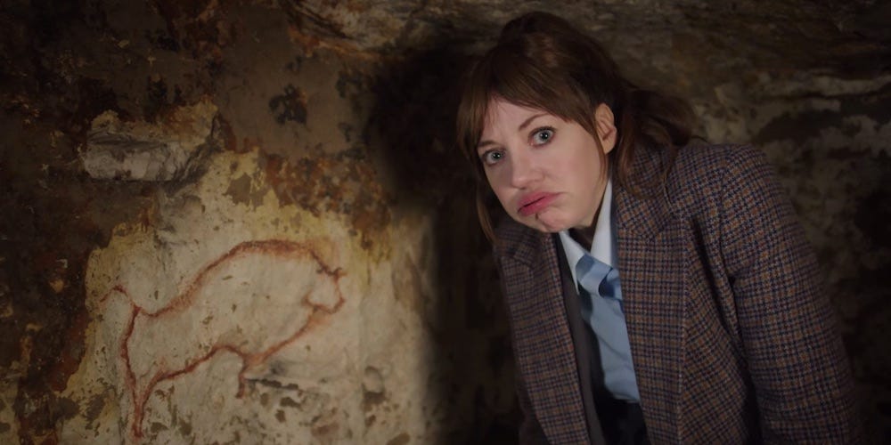 cunk on earth season 1 (2023) series landing somewhere between fishing with john’s unreliable documentary narration and the eric andre era of shows about making people tolerate someone who’s intolerable, hosted by daft angel olsen. less a for-dummies history 101 course and more just a welcome dramatization of the everyday conversations of the type of adult who types things like ‘for crine out loud’ on FB because they’ve never seen it written out before. kept thinking about that episode of seinfeld where jerry heckles kramer’s gf at work after she heckled him during his set and wondering what a history professor ever did to diane morgan.