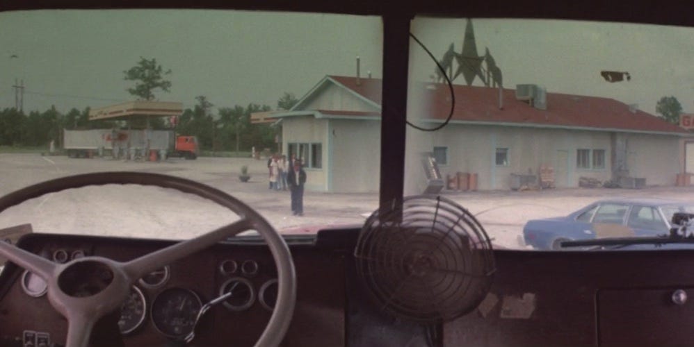 trucks dir. chris thomson (1997) adaptation of the same short story that wrought maximum overdrive with a bigger focus on, obviously, trucks, though its considerably smaller budget makes said trucks look way less cool (before, during, and after immolating). in spite of (or perhaps due to) taking itself way more seriously it really makes MO feel competent by comparison while carrying over many of that movie’s silliest traits (trucks driving dumbly in circles, people passionately calling trucks bastards, everyone somehow being unable to hear trucks until they’re already under them) while going out of its way to differentiate itself (diner owner doesn’t like guns—which we know because a guy says nearly these exact words, almost as if to the audience—while an electric knife sighting doesn’t lead to any sort of carnage, let alone animation). maybe the biggest difference though is that these people are all way less likable than the trucks here…..is that supposed to be part of the unexplained supernatural occupation of this town?